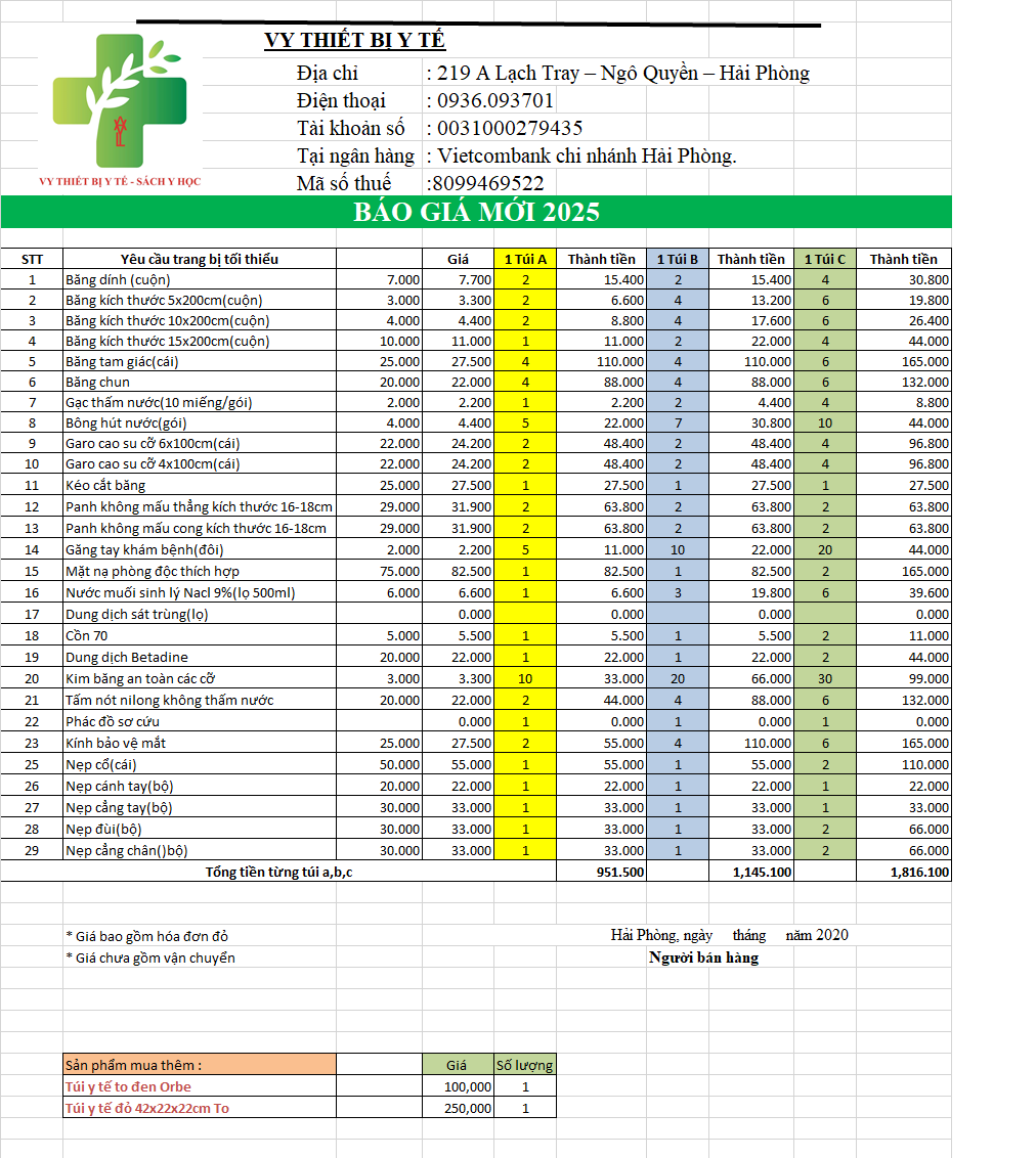 Túi sơ cứu A B C (có Hóa đơn đỏ)