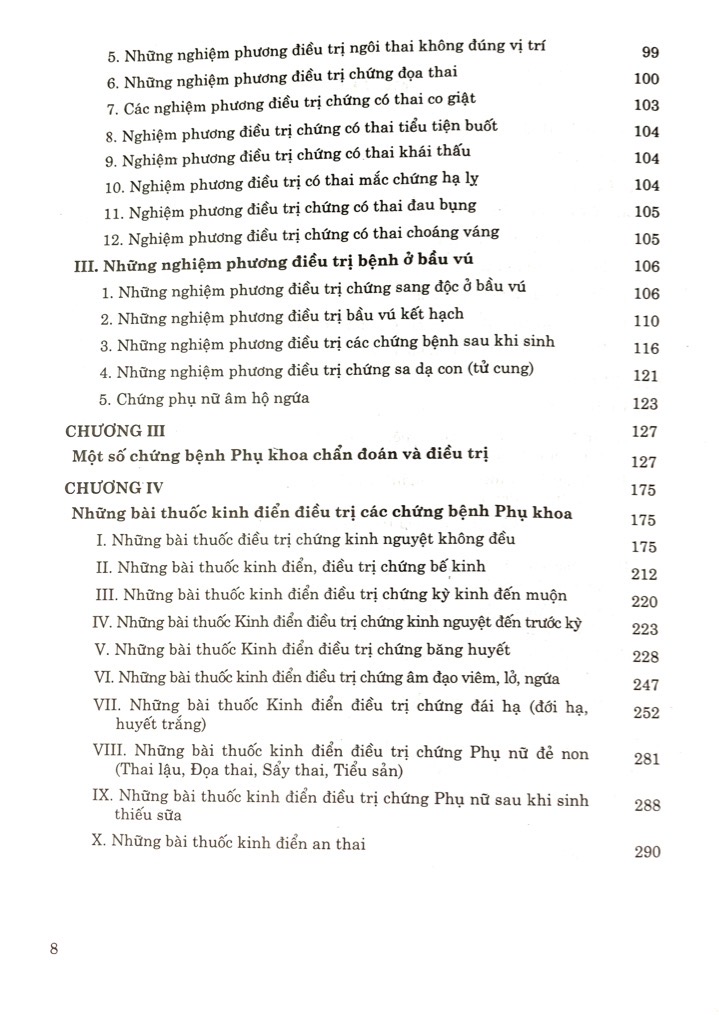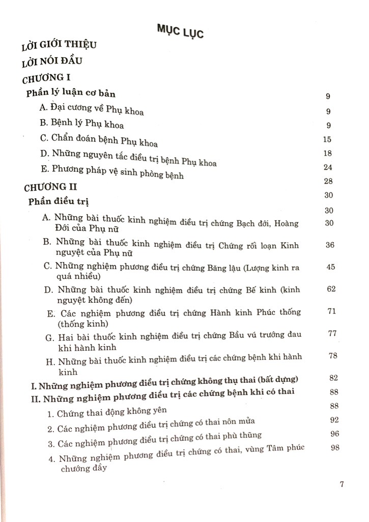Chương III: giới thiệu một số chứng bệnh phụ khoa, phương pháp trận đoán và điều trị.
