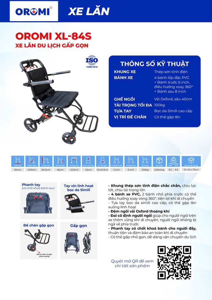 Xe lăn du lịch gấp gọn OROMI XL 84S